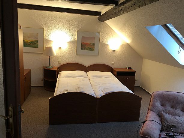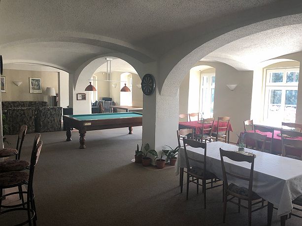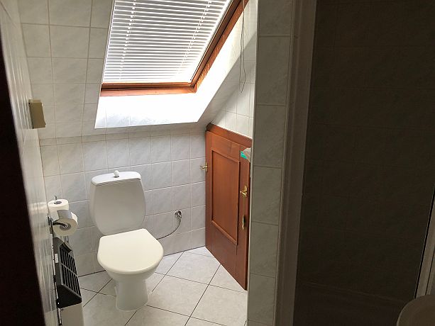 Apartment for 2 people with a double bed. It is situated on the top floor with beautiful view to the garden. There is own bathroom with shower and toilette. There is a desk, fridge, TV with satellite and free WiFi in the apartment. During hot summer days you may use portable Air-Condition. There is common living room available on the ground floor with sitting, small kitchen and a terrace with a grill. You can use a coffee machine, minibar with offer of beverages (for additional fee) and additional kitchen equipment (kettle, cutlery, plates, glasses). You may play billiard and darts during your relax time.