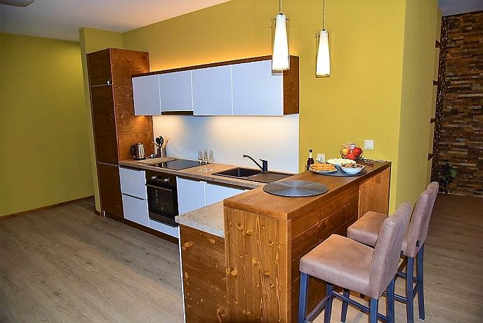 Moderný Apartmán A404 LAGEMA sa nachádza v apartmánovom dome Hrebienok Resort v centre obce Vysoké Tatry, vo vyhľadávanej oblasti Starý Smokovec. Nachádzame sa pri stanici pozemnej lanovky, ktorá vedie na Hrebienok. Apartmán s rozlohou 100 m2 tvoria dve spálne s manželskými posteľami. V apartmáne je aj obývacia izba s gaučom a plne vybavenou kuchynkou. V kúpeľni je toaleta, druhá toaleta je samostatná. Štýlový a priestranný apartmán je vhodný pre rodiny s deťmi. Kapacita ubytovania je prispôsobená pre 4 dospelé osoby a 2 deti do 10 rokov. Moderné zariadenie, drevené a kamenné obklady, doplnky a nádherný výhľad na Kráľovú hoľu a Gerlachovský štít zabezpečia pocit ozajstnej prírody aj vo vnútri. Samozrejmosťou je WiFi pripojenie na internet a podzemné parkovisko strážené kamerovým systémom za poplatok 9 EUR na deň. Na prízemí rezortu môžete využívať služby recepcie a viacerých reštaurácií. V okolitých hoteloch využijete služby wellness a fitness. Nájdete tu aj potraviny, Bio obchod a cukráreň. Zimné obdobie je ideálne na lyžovanie a sánkovanie v miestnom lyžiarskom stredisku Jakubkova lúka. V blízkosti sú aj strediská Dolný Smokovec – Pod lesom, Hrebienok alebo Tatranská Lomnica. Lyže si môžete uschovať v spoločnej lyžiarni s odkladacím vyhrievaným boxom na lyžiarky. V lete ocenia turisti aj cyklisti bohaté možnosti výletov, ktoré ponúkajú Vysoké Tatry. Môžete si spraviť výlet na Hrebienok, Rysy alebo Lomnický Štít. Menej náročné sú prechádzky okolo Štrbského či Skalnatého plesa. Ak radi plávate, môžete zájsť do neďalekých kúpeľov v Novom Smokovci alebo v Tatranských Zruboch.