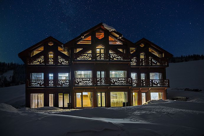 Apartmánový dom je situovaný v tichej lokalite goralskej dedinky Ždiar s čarokrásnymi výhľadmi na štíty Belianskych Tatier. V celom areáli sa nachádza veľa zelene, ktorá vytvára dokonalé miesto na oddych. Apartmány sú vyhľadávané z dôvodu súkromia a štýlového interiéru. Rodinky s deťmi, vítajú kompletne zariadenú kuchynku, spálňu s dvoma manželskými posteľami (200x150 cm) a veľkou americkou perinou. V apartmáne je povolené ubytovanie 2 dospelé osoby + 2 deti do 11,99 rokov. Belianske Tatry ponúkajú v lete možnosť turistiky a bicyklovania.V blízkosti resortu sú lyžiarske strediská (800 metrov od resortu SkiStrednica, 300 metrov od resortu SKiStrachan aj nočné lyžovanie, 3 km od resortu Ski Bachledova dolina). Recepcia & štýlová reštaurácia & bar v penzióne RIVER, ktorý je vzdialený 150 metrov od apartmánov. Očarí svojou priateľskou atmosférou a prvkami dreva. Raňajky aj večere zahŕňajú bohatý výber jedál pripravených podľa našich tradičných receptov. Večernú pohodu si môžete vytvoriť vo vírivej jacuzzi s pohárom šumivého vína práve v penzióne RIVER. Pri aktuálnej situácii raňajky aj večere (polievka, hlavné jedlo, dezert) privezieme v balenej forme priamo ku apartmánom. APARTMÁN je vybavený: Priestranná vstupná chodba: vstavaná skriňa, vešiaková stena, bezpečnostný systém Paradox, mramorová podlaha Obývacia miestnosť: sedacia súprava (2 x dvoj-sed), LCD televízor s uhlopriečkou 120 cm a 24 TV programmi, mramorová podlaha, koberec s vysokým vlasom, 3-setový konferečný stolík. Kuchyňa: jedálenský set pre 4 osoby (chladnička s mrazničkou, sklokeramická varná doska, vstavaná rúra, mikrovlnná rúra, varná kanvica, umývačka riadu + tablety do umývačky), kuchynský riad, mramorová podlaha. Oddychová zóna: spálňa s dvoma manželskými posteľami (s rozmermi 200 x 150 x 25 cm), antialergické vankúše. Kúpelňa: mramorový obklad, umývadlo so skrinkou, sprchovací kút, uteráky, osušky, tekuté mydlo, toaleta. V celom apartmáne je hosťom k dispozícií WIFI pripojenie. Teplotu podlahového vykurovania si hostia regulujú individuálne.
