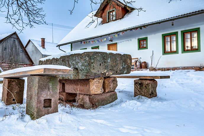 Prostředí chaloupky i zahrady, kde děti zkoumali celý víkend truhly s hračkami a prostory stodoly, otrhávali plody zahrady, dospěláci si užili perfektně sladěný interiér jakož i úžasné keramické hrnky na kafe a příjemné posezení u kamenného stolu.. úžasný klid ve vesnici, v okolí hezké tipy na výlet, pro rodiny s dětmi optimální, příjemné uvítání i v podobě lokálních dárečků skrytých v proutenem koši. Moc doporučujeme:)