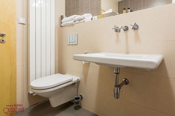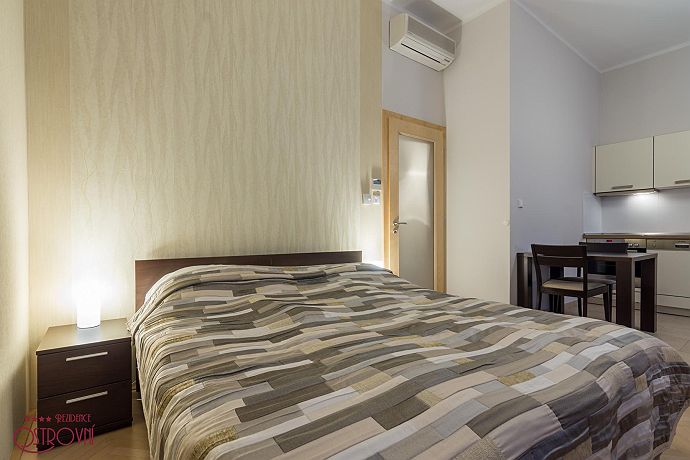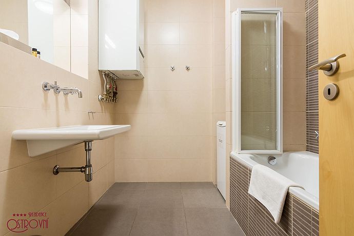 Studio Apartment No.2 combining elegance and timeless design. This studio has 32 sqm. All apartments represent a suitable place for spending a family holiday in one of the most beautiful European capitals as well as for creating a temporary home if staying longer. Having only 10 apartments in the building ensures maximum privacy. For the comfort of guests all apartments are fully equipped: Wi-Fi internet, SAT TV, LCD TV, air condition, kitchen unit with dishes and Bosch appliances (refrigerator with freezer, glass ceramic hob, oven, dish washer, microwave, kettle, Nespresso coffee maker), bathroom with bath and glass curtain, washing machine, safe, iron, ironing board, hair-dryer, bed and bath linens, house phone. Residence Ostrovni is guarded by a camera surveillance system. All interior premises are non-smoking. The rental price includes the following services: All equipment, Wi-fi, SAT TV, bed and bath-linen exchange in case of minimum 7 nights stay, technical maintenance. Residence Ostrovni is favorite not only for its excellent position, but also thanks to family atmosphere and art of hospitality.