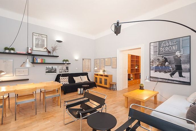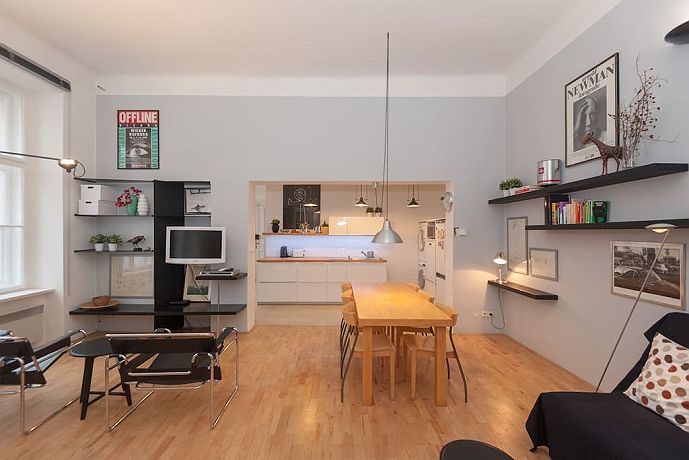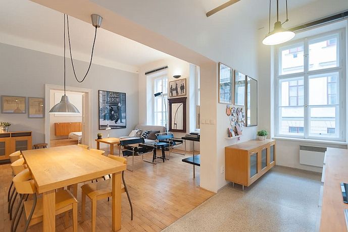 Beautiful apartment in the center of Prague. It is situated only 1 minute walking from the Wenceslas Square. However, the apartment is situated in the backyard. There is a huge living room with kitchenette where are possible to sleep 4 people and bedroom where 2 people can sleep. The apartment is fully equipped.