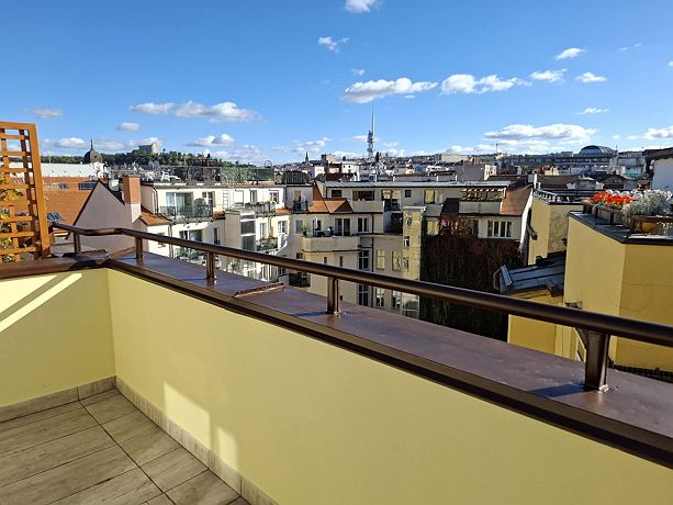 It is very nice apartment in the center of Prague. There is living room where is possible to sleep, kitchen, bedroom in upstairs area and there are two full bathrooms. The apartment is fully furnished with new appliances. All sightseeings are within walking distance. There is shopping mall Palladium only 5 minutes walking, bus station Florenc 4 minutes walking. The apartment is very quiet and amazing for sleeping. You can use a large terrace. All parties are strictly forbidden.